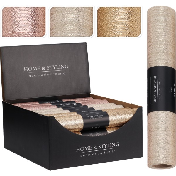 Aporta un toque sofisticado y luminoso a tus celebraciones con este camino de mesa decorativo con acabado brillante. Ideal para mesas navideñas, bodas o cenas elegantes. Diseño: Textura metalizada con reflejos dorados, champán o rosados. Medidas: 28 x 200 cm.