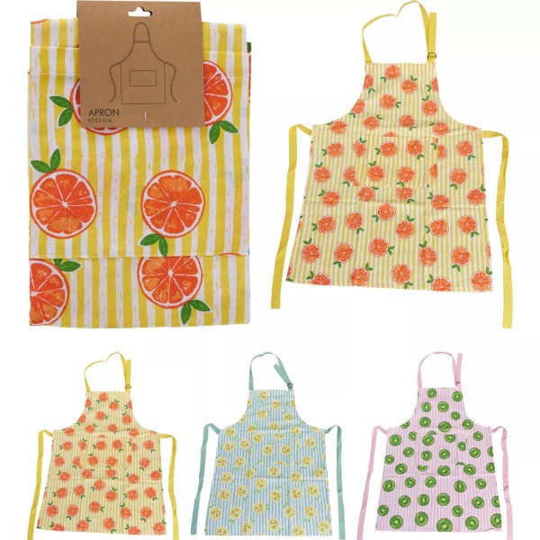 Dale un toque fresco y veraniego a tu cocina con este delantal estampado con divertidos diseños frutales. Práctico, cómodo y lleno de color, es perfecto para cocinar, hornear o realizar manualidades sin preocuparte por las manchas. Medidas: 84 x 60 cm. Modelos surtidos.