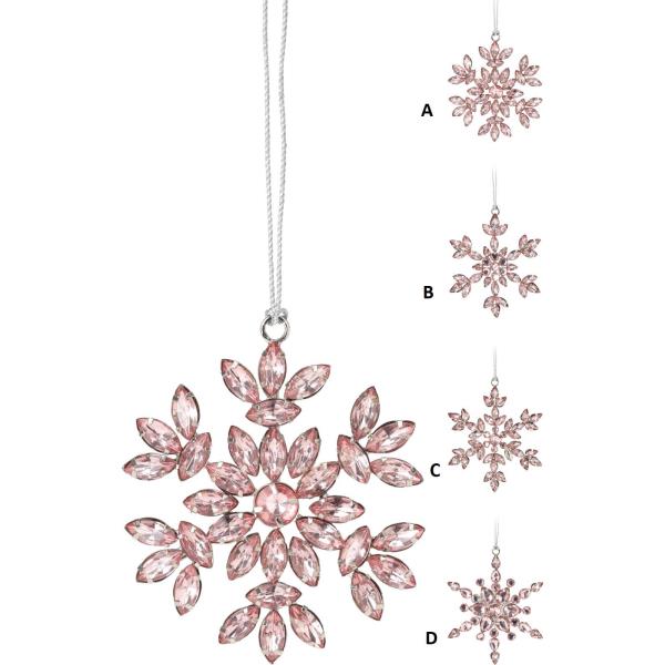 Adorno copo de nieve de 10 cm color ROSA. Disponible en varios modelos (A-B-C-D), puede indicar el modelo deseado en el comentario del articulo.