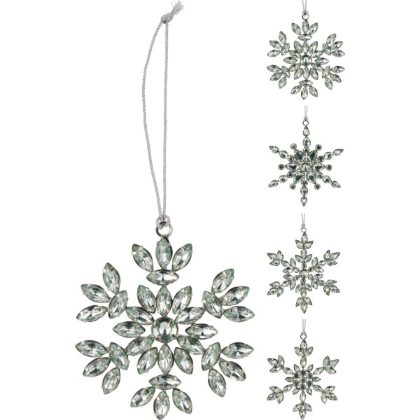 Aporta brillo y elegancia a tu árbol de Navidad con estos colgantes en forma de copo de nieve. Modelos surtidos: Diferentes formas de copo. Medida: 10 cm.