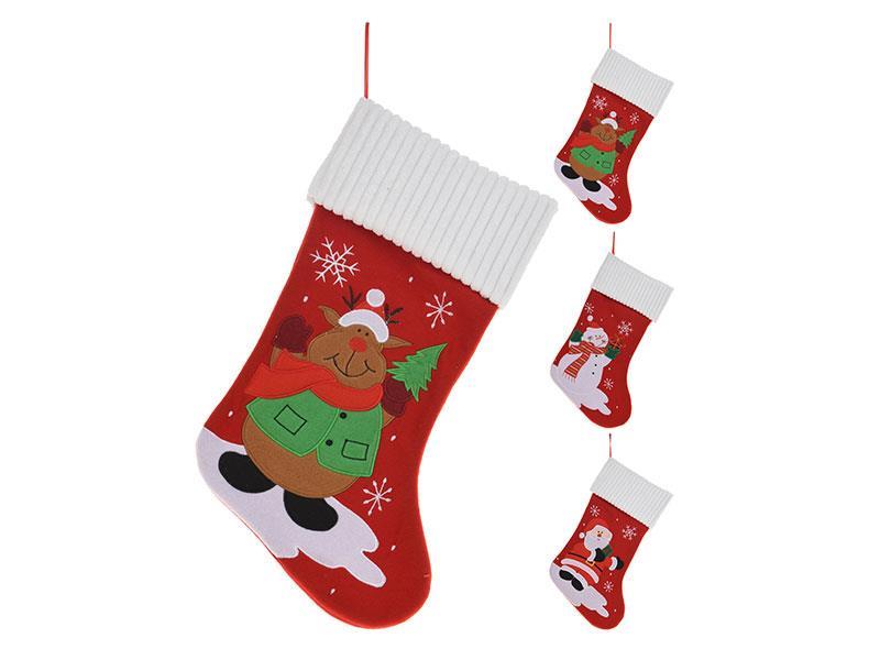 Adorno calcetín de Navidad. Modelos surtidos: Papa Noel, reno y muñeco de nieve.