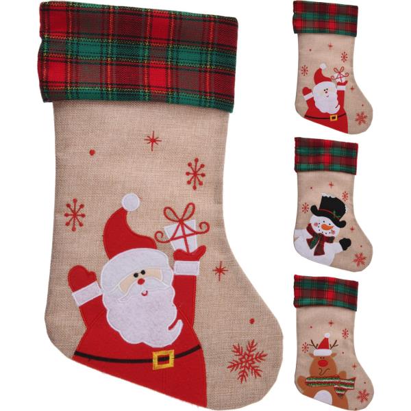 Calcetín navidad de yute disponible en varios modelos (Papá Noel-Muñeco Nieve-Reno). Puede indicar el modelo deseado en el comentario del articulo. Medida: 42 cm.