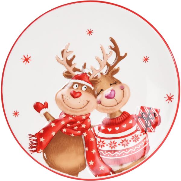 Plato de cermámica decorado con dibujo de reno. Medidas: 24 cm.
