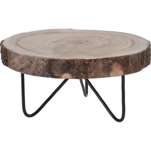 Bandeja mesita redonda de madera con patas metálicas. Medidas: 30 cm.