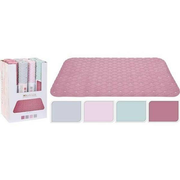Alfombra de baño disponible en 4 colores: gris, rosa, celeste y rosa. Medidas: 69x39 cm.