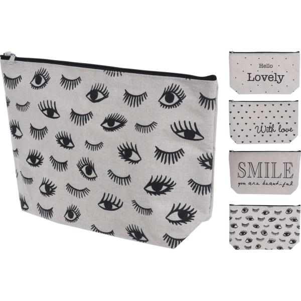 Neceser de tela disponible en varios modelos (Hello Love-With Love-Smile-Ojitos). Puede indicar el modelo deseado en el comentario del articulo. Medidas: 33x21 cm.