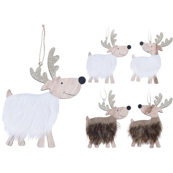 Adorno colgante con silueta de reno fabricado en madera para la decoracón de árbol de navidad. Indicar modelo deseado en el comentario del pedido. Medida: 15 cm.