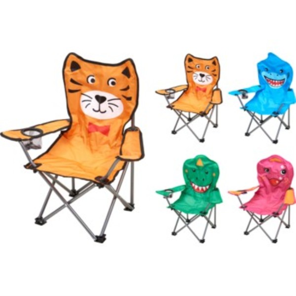 Divertida y práctica silla plegable para niños, perfecta para jardín, playa, camping o actividades al aire libre. Disponible en 4 modelos surtidos con diseños de animales, coloridos y llamativos que encantarán a los más pequeños. Medidas: 35 x 35 x 60 cm.
