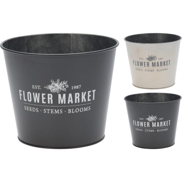 Macetero de zinc disponible en dos modelos (negro-beige). Puede indicar el modelo deseado en el comentario del articulo. Medidas: 17x14x12 cm.