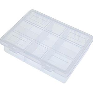 Caja de plástico para ordenación en el hogar. En su interior contiene varios separadores para una mayor ordenación. Ideal para almacenar accesorios de costura, joyas o pequeños artículos. Medidas: 20X16cm.