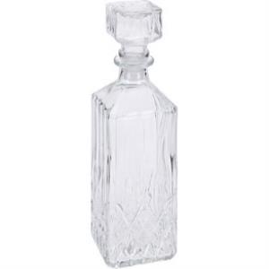 Botella con tapón de 900 ml de capacidad fabricada en vidrio transparente con relieve. Medidas: 9x23 cm.