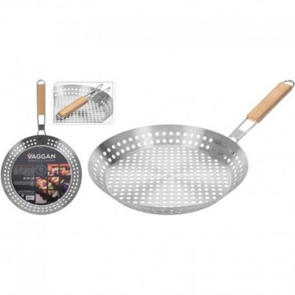Sarten barbacoa 30cm acero inoxidable mango de madera plegable