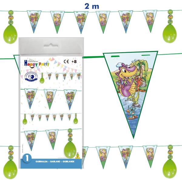 Guirnalda para decoración de fiesta decorada con dinosaurios. Medida: 2 metros.