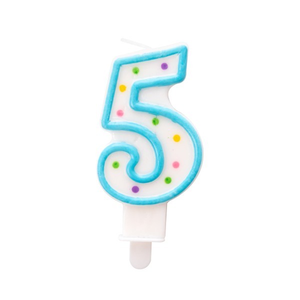 VELA NUMERO 5 PUNTOS MULTICOLOR 9CM.