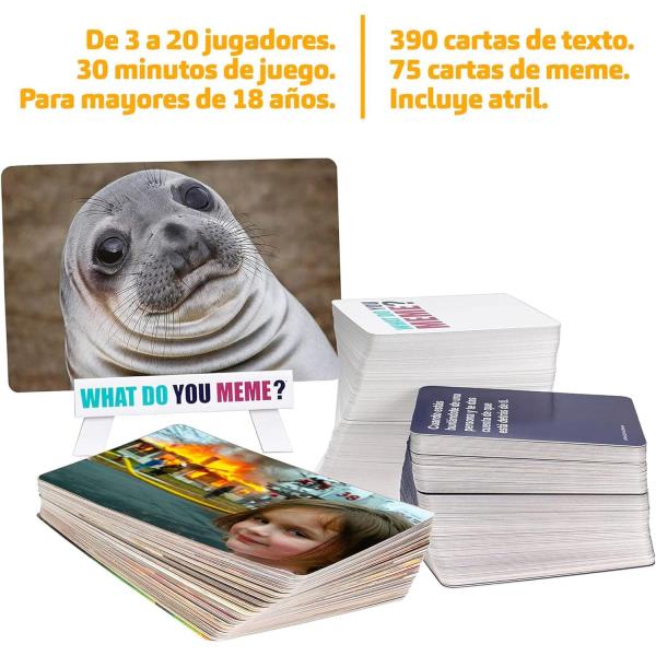 Sumérgete en el hilarante mundo de "What Do You Meme? SP", el juego de cartas que te reta a crear los memes más divertidos. Compite con amigos y familia para combinar fotos y textos y ver quién logra la combinación más graciosa. Ideal para reuniones sociales, este juego promete carcajadas y entretenimiento garantizado.