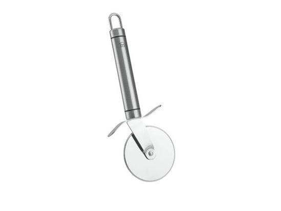 Cortapizzas con mango ovalado y herméticamente cerrado. En acero inoxidable. Apto para lavavajillas. Medidas: 6,5 cm de diámetro y 20 cm de altura.