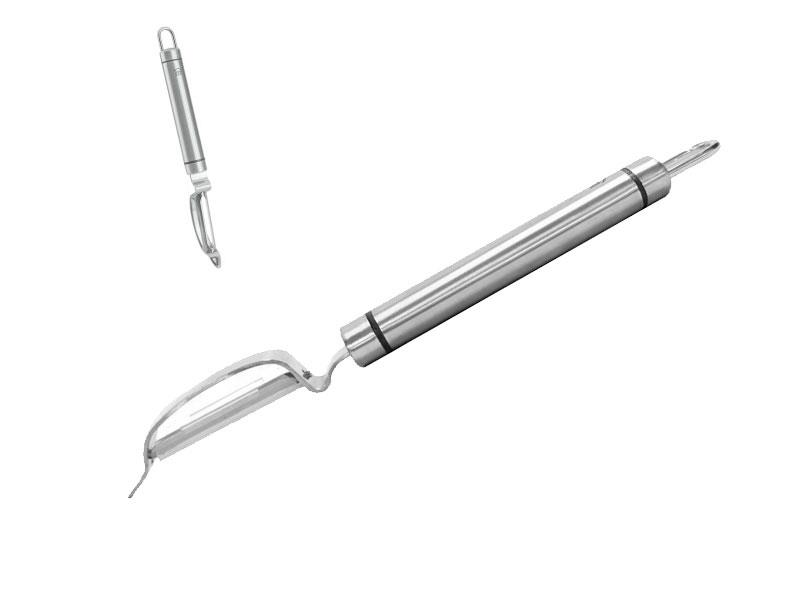 Pelapatatas giratorio con mango ovalado y herméticamente cerrado. En acero inoxidable. Apto para lavavajillas. Medidas: 20,5 cm de altura.