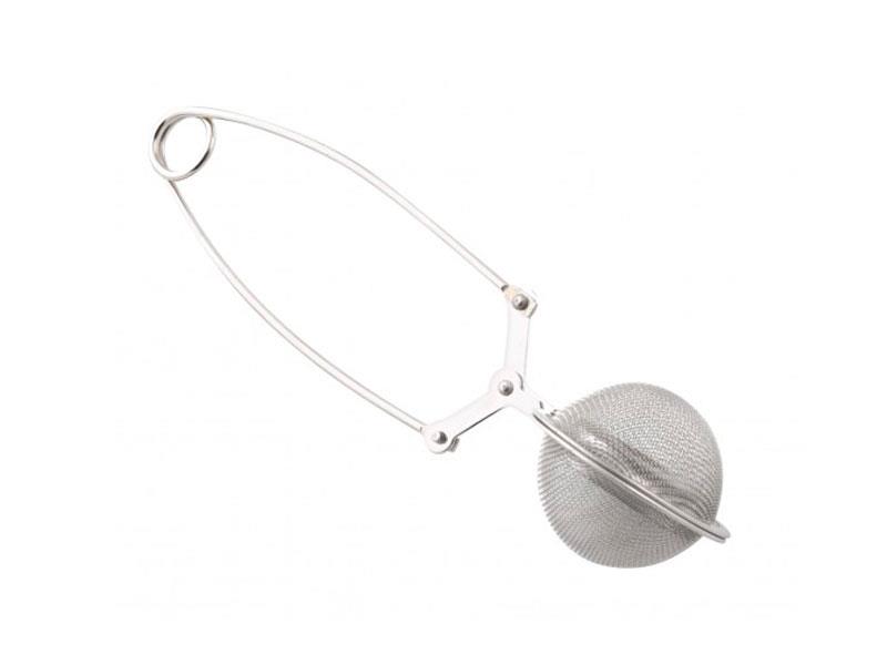 Filtro para té con mango en acero inoxidable. Medidas: 5 cm de diámetro y 16,5 cm de altura.