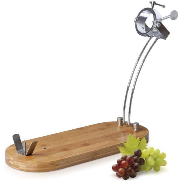 Jamonero con base de madera de bambú y sistema giratorio. El brazo es abatible para un mejor almacenamiento. Medidas: 48x18,5x43 cm.