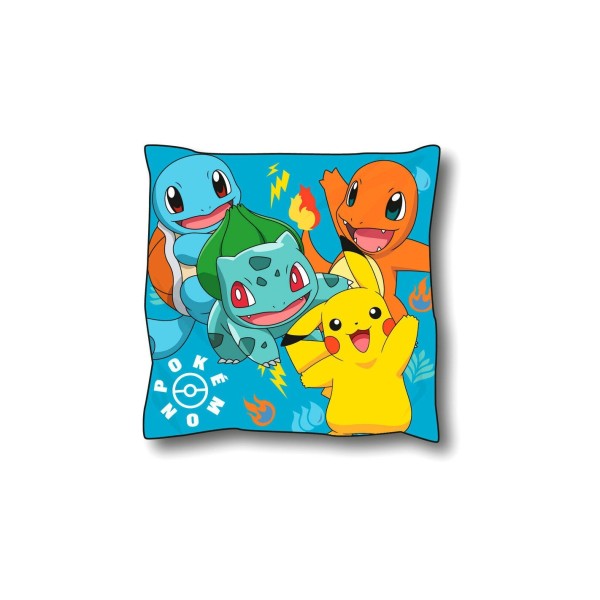 Cojín cuadrado decorativo de 40x40 cm con diseño inspirado en personajes Pokémon.