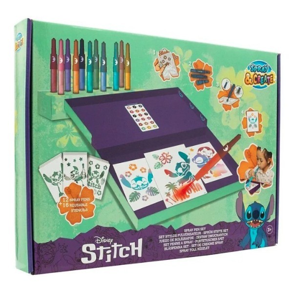 ¡Da rienda suelta a la creatividad con este divertido Set de Bolígrafos Spray de Stitch! Ideal para peques a partir de 3 años, este kit les permite colorear de una forma diferente y súper entretenida: ¡usando bolígrafos de aire para crear efectos degradados y dibujos únicos!