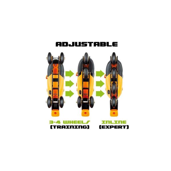 Patines ajustables color naranja para tallas de 34 a 38. Puedes modificar la posición de las ruedas. Edad recomendada +6 años.