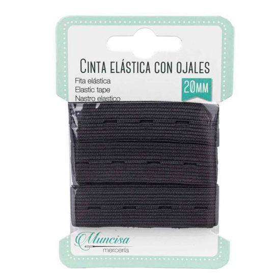 Cinta elástica con ojales color negro 20mm x 1,5m.