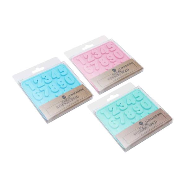 Molde silicona con números disponible en varios colores. Medidas: 11x10x0,6 cm.