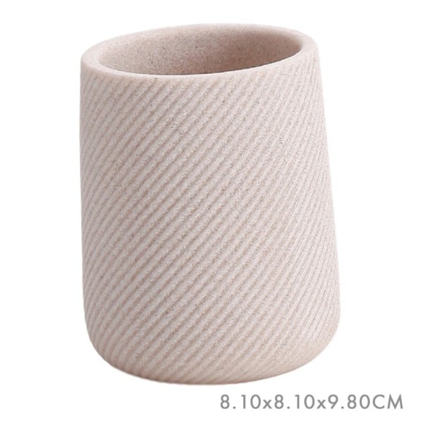Este vaso portacepillos destaca por su diseño minimalista y elegante, perfecto para aportar armonía y estilo a tu baño. Su textura diagonal en tono beige le da un acabado moderno y sofisticado, ideal para quienes buscan accesorios decorativos con un toque natural. Medidas: 8,1 × 8,1 × 9,8 cm.