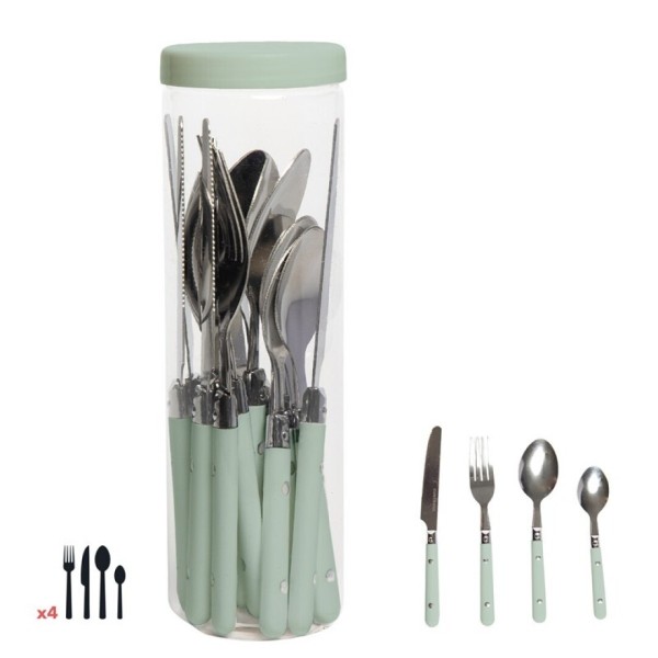 CUBIERTOS ACERO INOXIDABLE VERDE 16PZ
