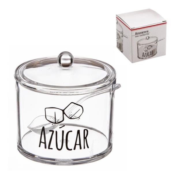 Azucarero de metacrilato transparente redondo. Medidas: 9x9x9,5 cm.