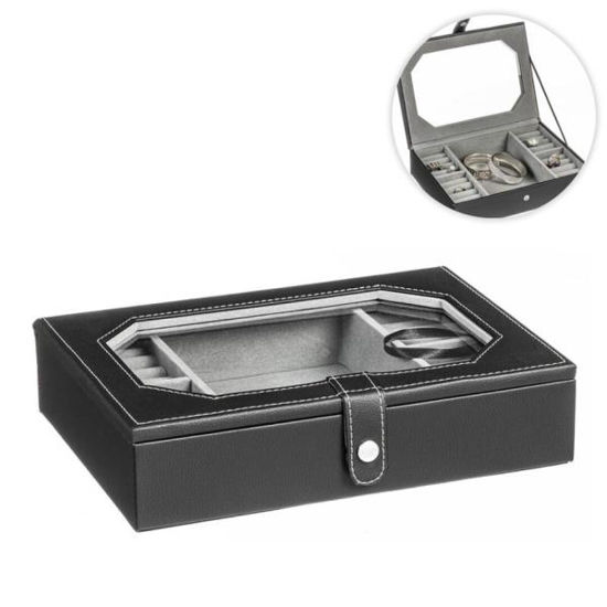 Joyero de polipiel color negro. Medidas: 27x6x19,5 cm.