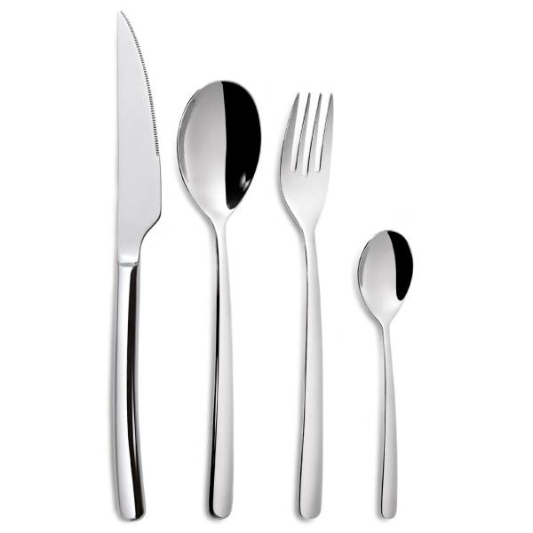 Cuchara cafe modelo Cuba de acero con acabado espejo y 3 mm de grosor. La longitud es de 13,4 cm. Pack con 6 unidades.