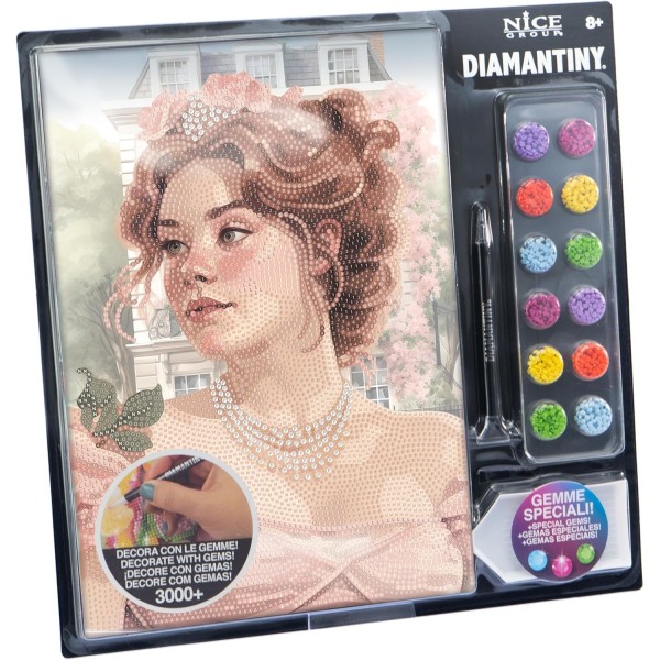 Descubre el placer de crear arte brillante con este set Diamantiny de los Bridgerton. Incluye un lienzo preimpreso, más de 3000 gemas de colores y una herramienta especial para aplicarlas fácilmente. Solo sigue el patrón y verás cómo tu obra cobra vida con un efecto en relieve y lleno de luz. A partir de 8 años.