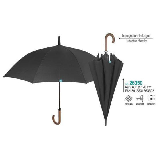Paraguas caballero de apertura automática 69/8 con varillas de fibra de vidrio antiviento. Diámetro: 120 cm.