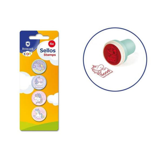 Pack 4 sellos unicornios. Medidas: 2,5x4x2,5 cm.