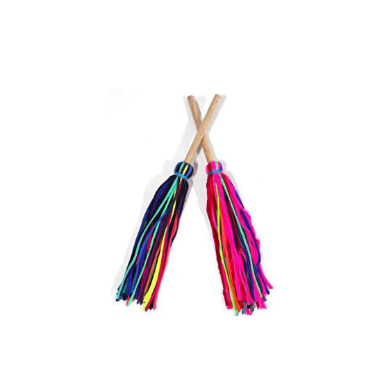 Sacudidor de polvo clásico con mango de madera y tiras de tejido reciclado de 50 cm aproximadamente.