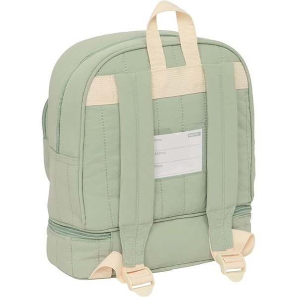 Mochila nevera infantil con compartimento principal con cremallera y compartimento térmico independiente en la base para conservar mejor los alimentos. Incluye tarjeta de identificación personal en la parte trasera y asas ajustables para mayor comodidad. Ideal para guardería o excursiones. Medidas: 22x10x27 cm.