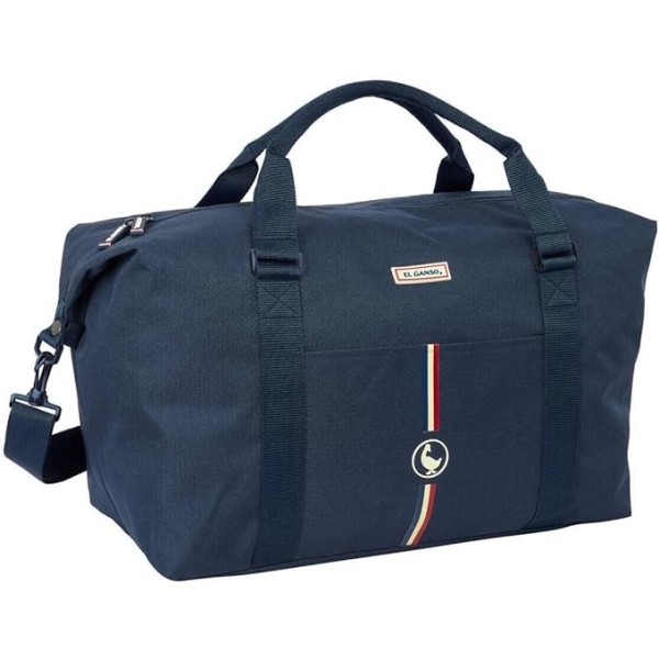 Bolsa para fin de semana El Ganso con amplio compartimento principal y cremalleras de apertura en 2 direcciones para un acceso cómodo y rápido. Cuenta con bolsillo frontal con cierre de imán, interior totalmente forrado y prácticos bolsillos interiores para mejor organización. Incluye asas de mano forradas y bandolera ajustable y extraíble. Medidas: 50x22x29 cm.