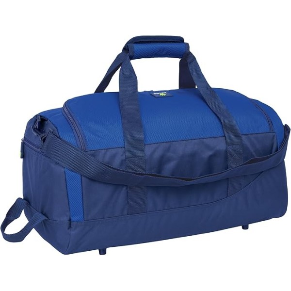 Bolsa de deporte Kelme confeccionada en poliéster de alta resistencia con cremalleras suaves y duraderas. Incorpora doble tirador en la cremallera principal para facilitar la apertura, amplio bolsillo frontal y bolsillos laterales con cremallera para mejor organización. Cuenta con fondo interior semirrígido extraíble y tacos de protección en la base para mayor estabilidad y durabilidad. Incluye bandolera ajustable y extraíble y asas de mano forradas para un transporte cómodo. Medidas: 50x25x25 cm.