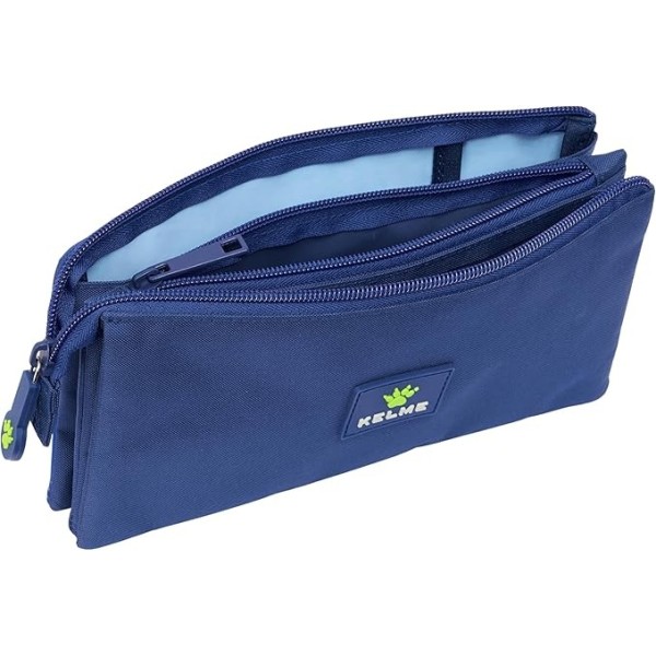 Portatodo Kelme con 3 compartimentos independientes con cremallera para mantener bolígrafos, lápices y accesorios perfectamente organizados. Incluye bolsillo interior central con cierre para mayor seguridad. Fabricado en material resistente y duradero. Medidas: 22x3x12 cm.