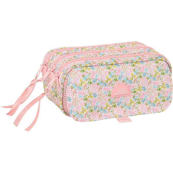 Estuche portatodo triple Vicky Martin Berrocal fabricado en poliéster resistente con cremalleras de alta calidad y tacto suave. Incorpora tres compartimentos independientes para mantener bolígrafos y accesorios perfectamente organizados, además de bolsillo frontal con cremallera para un acceso rápido. Dispone de asa lateral de mano y cinta trasera adaptable a carro portamochilas. Medidas: 21,5x8x10 cm.