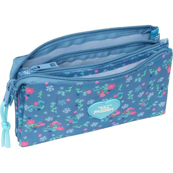 Portatodo de Frozen con 3 compartimentos independientes con cremallera para mantener bolígrafos, lápices y accesorios perfectamente organizados. Incluye bolsillo interior central con cierre para mayor seguridad. Fabricado en material resistente y duradero. Medidas: 22x3x12 cm.
