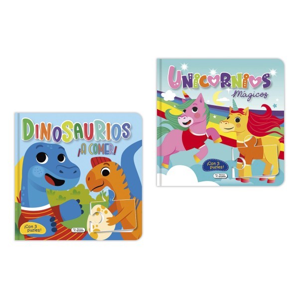A través de historias sencillas y personajes divertidos como dinosaurios y unicornios, los más pequeños disfrutan mientras completan puzles integrados en cada libro.
