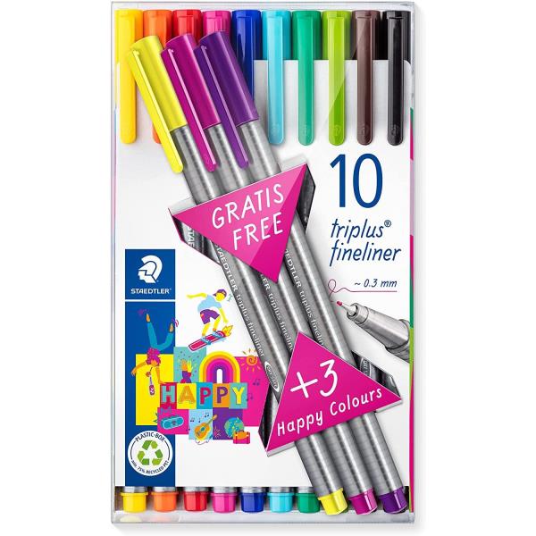 Pack de 13 rotuladores de punta fina 0,3 mm Triplus Fineliner.