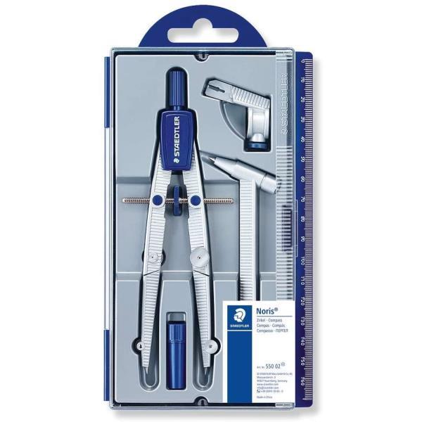 Compás Escolar con adaptadores corto y largo. Es de la marca Staedler.