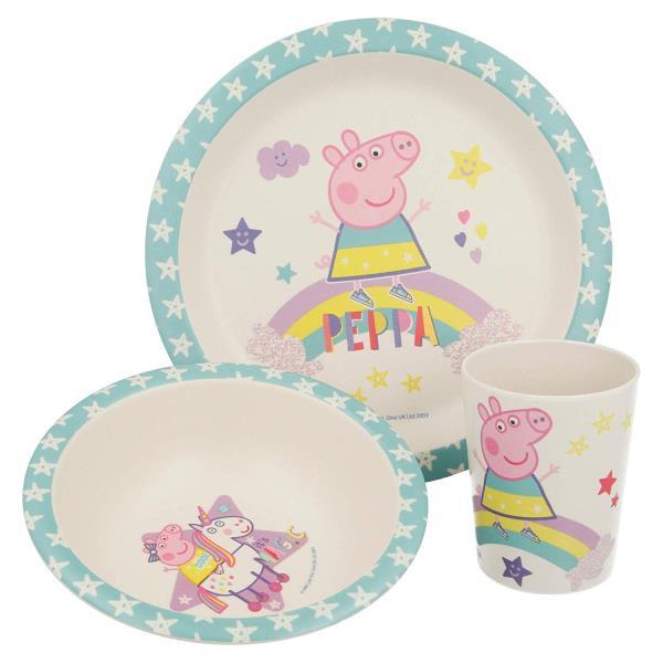 VAJILLA INFANTIL DE BAMBÚ PEPPA PIG SET 3PZ
