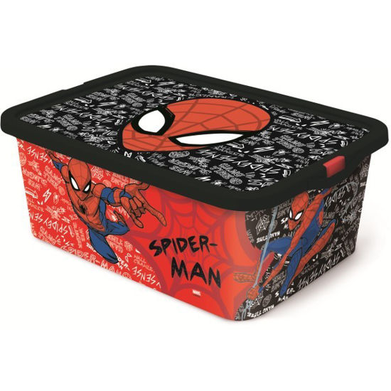 Esta caja de almacenaje de 13 litros con diseño de Spiderman es perfecta para guardar juguetes, libros, ropa o materiales escolares. Ideal para mantener el orden en la habitación infantil, con un toque divertido y lleno de acción. Cuenta con un práctico cierre de click que mantiene el contenido seguro y protegido. Fabricada en plástico resistente, es ligera y fácil de transportar. Medidas: 38,7x28,7x15 cm.