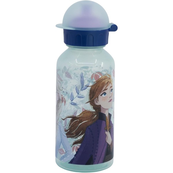 Esta botella infantil de 370 ml capacidad hecha de polipropileno con los personajes de Frozen es perfecta para el colegio, excursiones o cualquier salida. Incluye una práctica boquilla para beber con facilidad y un tapón de seguridad que evita salpicaduras y derrames accidentales. Además, está fabricada con materiales libres de BPA, garantizando la seguridad de los niños.