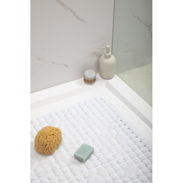 Alfombra antideslizante para ducha de 54 x 54 cm, fabricada en material resistente y flexible. Equipada con múltiples ventosas de alta calidad que garantizan una fijación firme a la superficie, evitando deslizamientos y aportando mayor seguridad y estabilidad durante el uso.